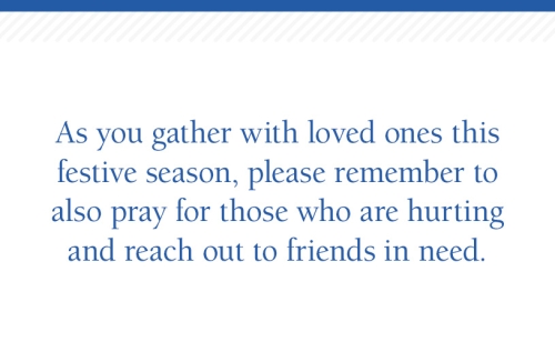 As you gather with loved ones this festive season, please remember to also pray for those who are hurting and reach out to friends in need.